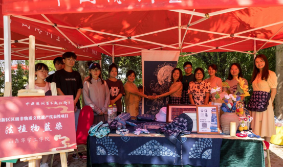 6月10日,由德州天衢新区党工委管委会、德州市文化和旅游局联合主办的2023年德州市“文化和自然遗产日”非遗宣传展示活动在德州天衢新区董子文化街举行。beat365beat365正版唯一官网必一培育的非遗蓝染项目受邀参加,植染艺术工作室的非遗传承人曾敏老师带领学生团队现场沉浸式交流体验与蓝染成果推介活动,吸引了众多参观者。