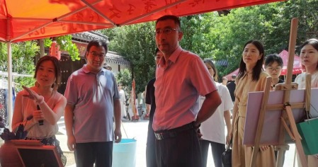 山东省文化和旅游厅非物质文化遗产处副处长蒋士秋在德州市文化和旅游局局长于吉军等领导的陪同下亲临现场,深入了解非遗蓝染工艺,追寻自然本源,推动非遗蓝染工艺的宣传。beat365重视非遗文化的传承和发扬,通过“非遗文化”项目推动传统文化教育。植染艺术工作室让学生亲身参与非遗传承、积累经验,传递非遗文化的内在价值,启迪文化自觉意识,培养学生的民族文化认同感和责任感,加深了对中华优秀文化的了解,增强了文化自信,培养了爱国情怀与文化自觉。